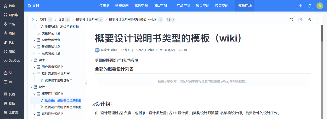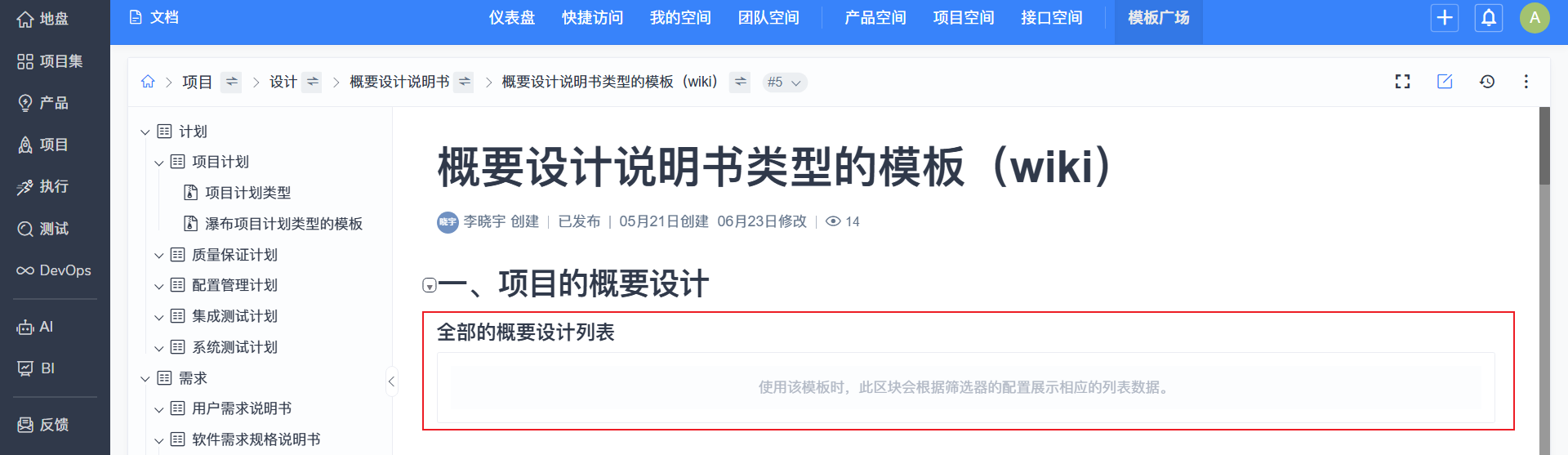 ▼文档模板的编辑器升级为BlockSuite编辑器,原富文本、Markdown和Wiki类型的文档模板升级后均用BlockSuite编辑器渲染,将Wiki模板中的系统数据升级为禅道数据筛选器。