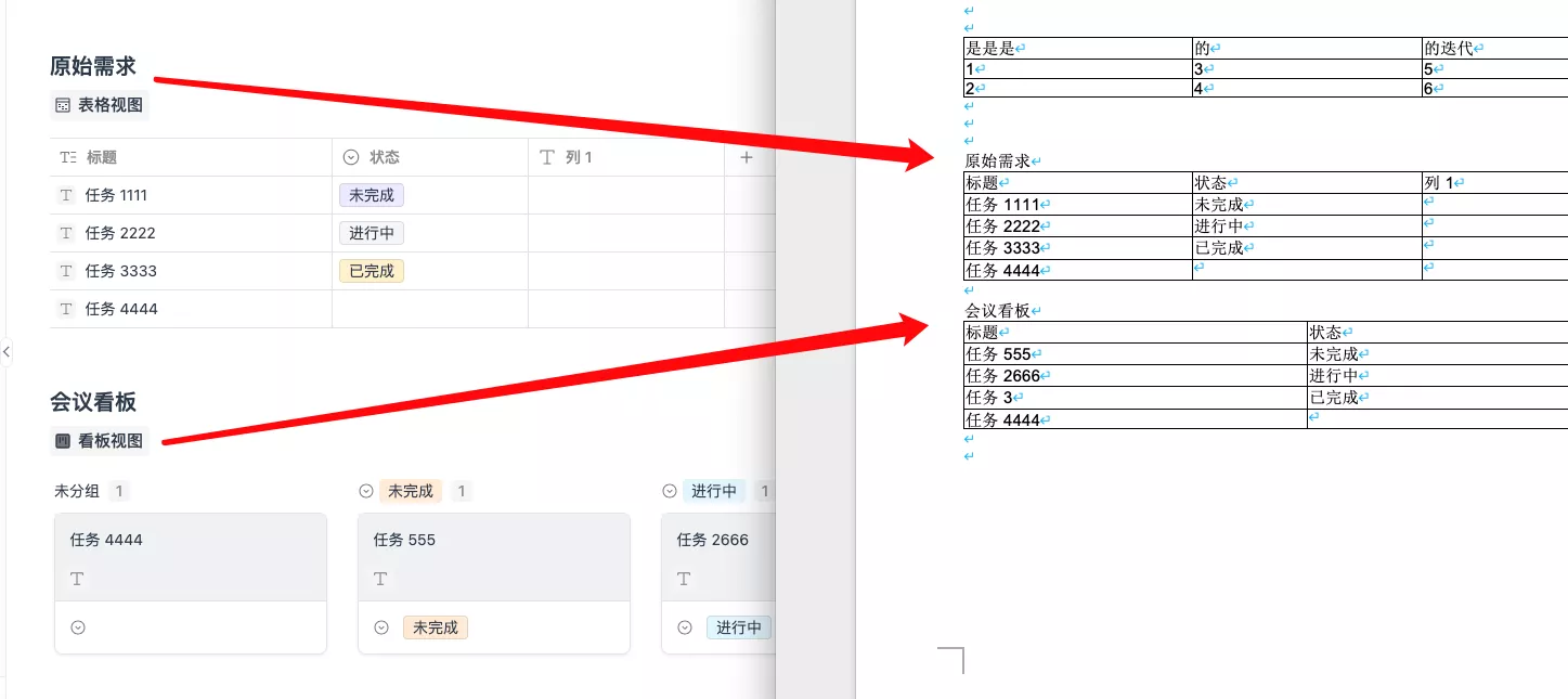 ▼支持导出文档中插入的看板视图和表格视图中的标题。