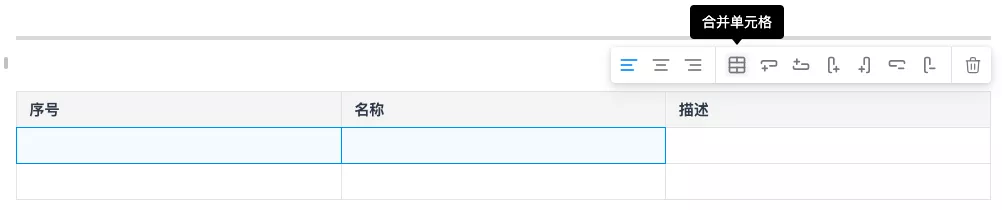 ▼文档新编辑器中插入的简单表格支持合并单元格。