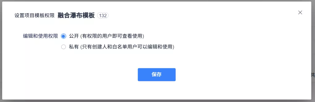 ▼项目模板新增「权限管理」,只有发布后的项目模板才可以使用。