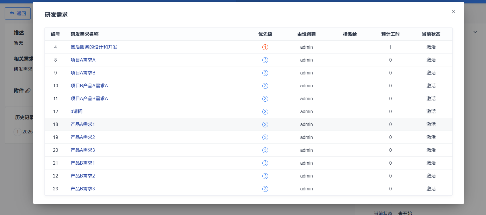 ▼测试单详情增加相关需求信息,点击需求后的个数,可以在弹窗中看到提测的需求。