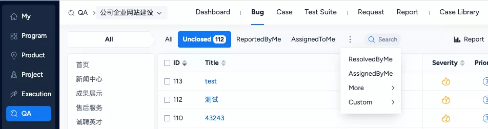 - 功能开关中关闭「用例库」后,系统中隐藏「用例库」相关入口