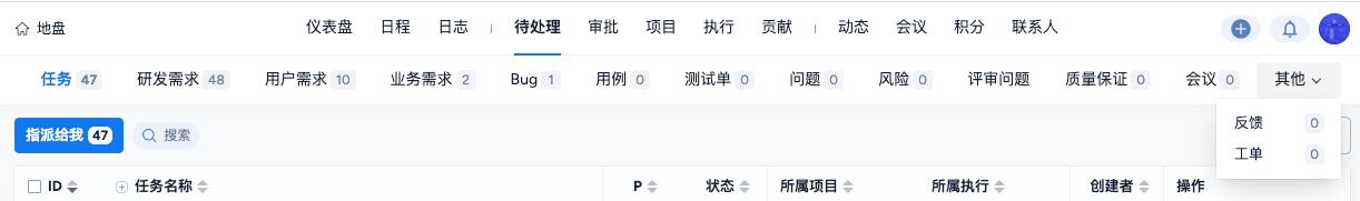 - 功能开关中关闭「项目集」后,系统中隐藏「项目集」相关入口