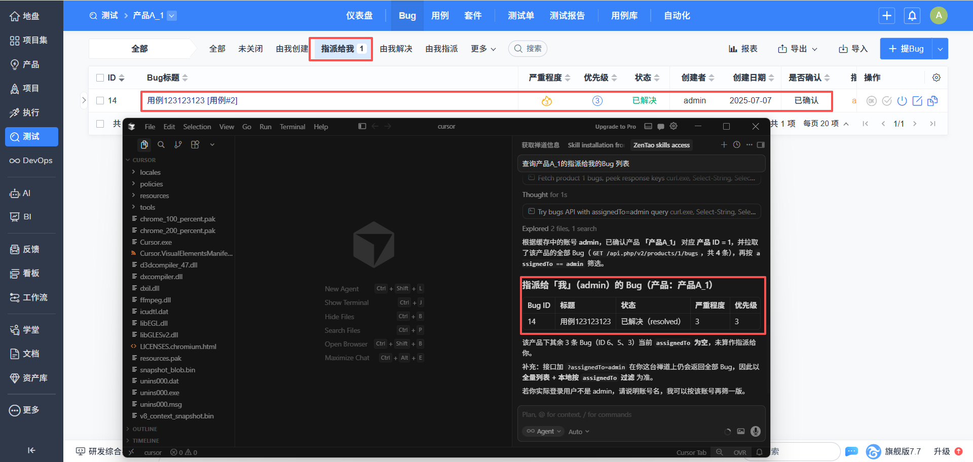 - 数据查询:如查询项目、执行、需求、Bug、任务、用例、反馈、工单等各类工作项及其状态。