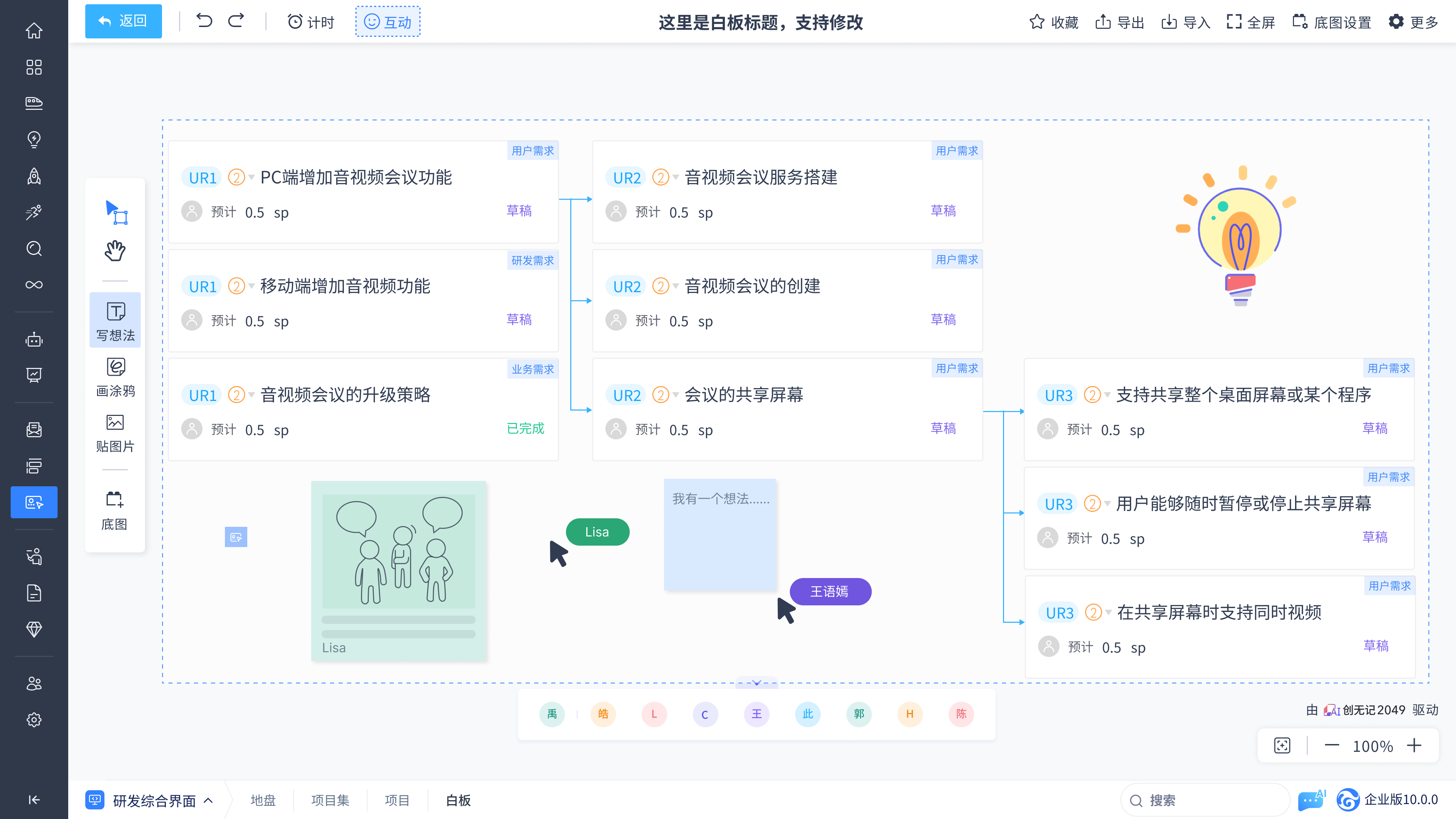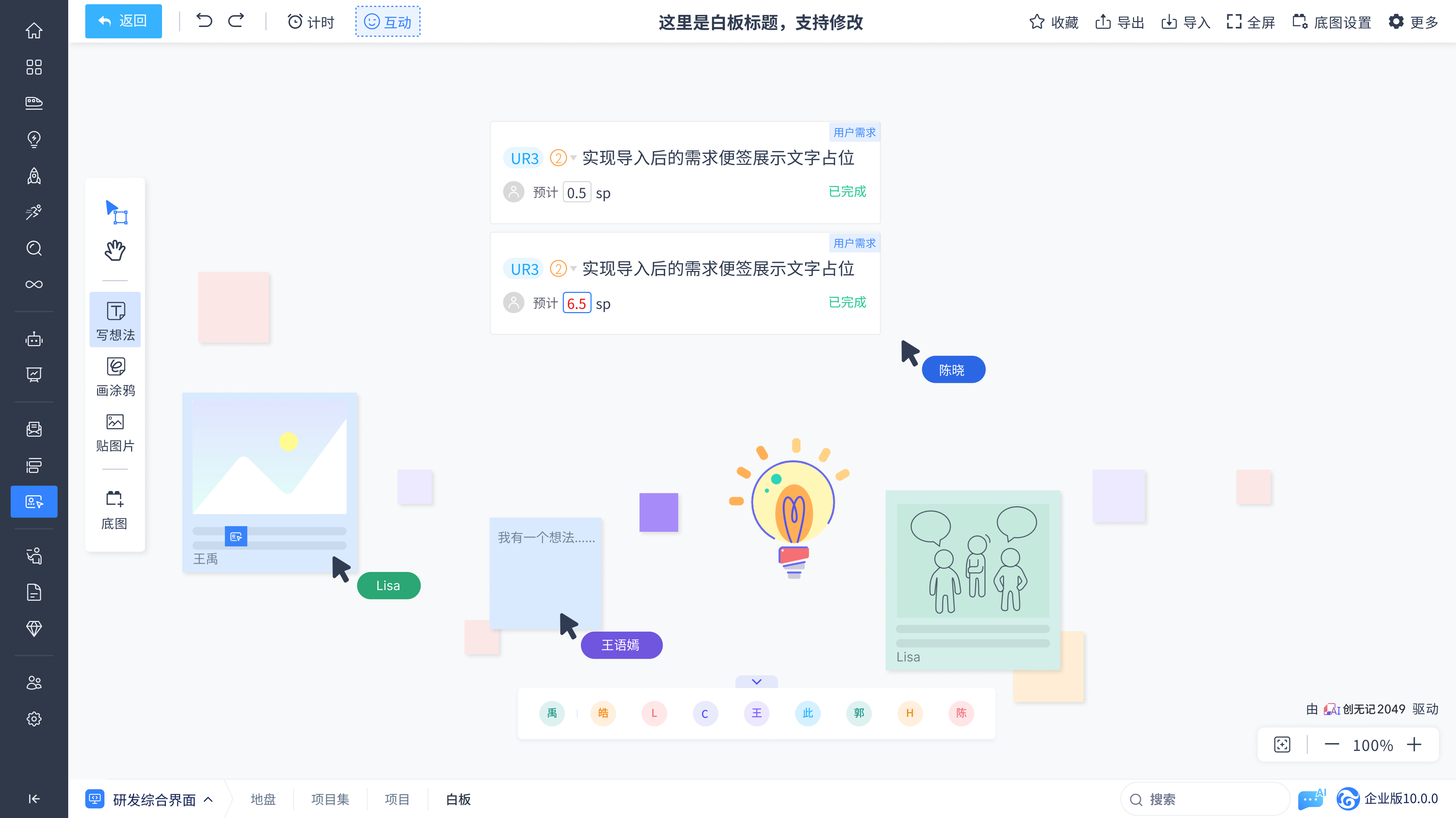 - 编辑需求卡片的优先级和故事点:导入白板中的需求卡片后,团队可以灵活编辑需求的优先级和故事点,以便于进行需求排序和共创讨论。