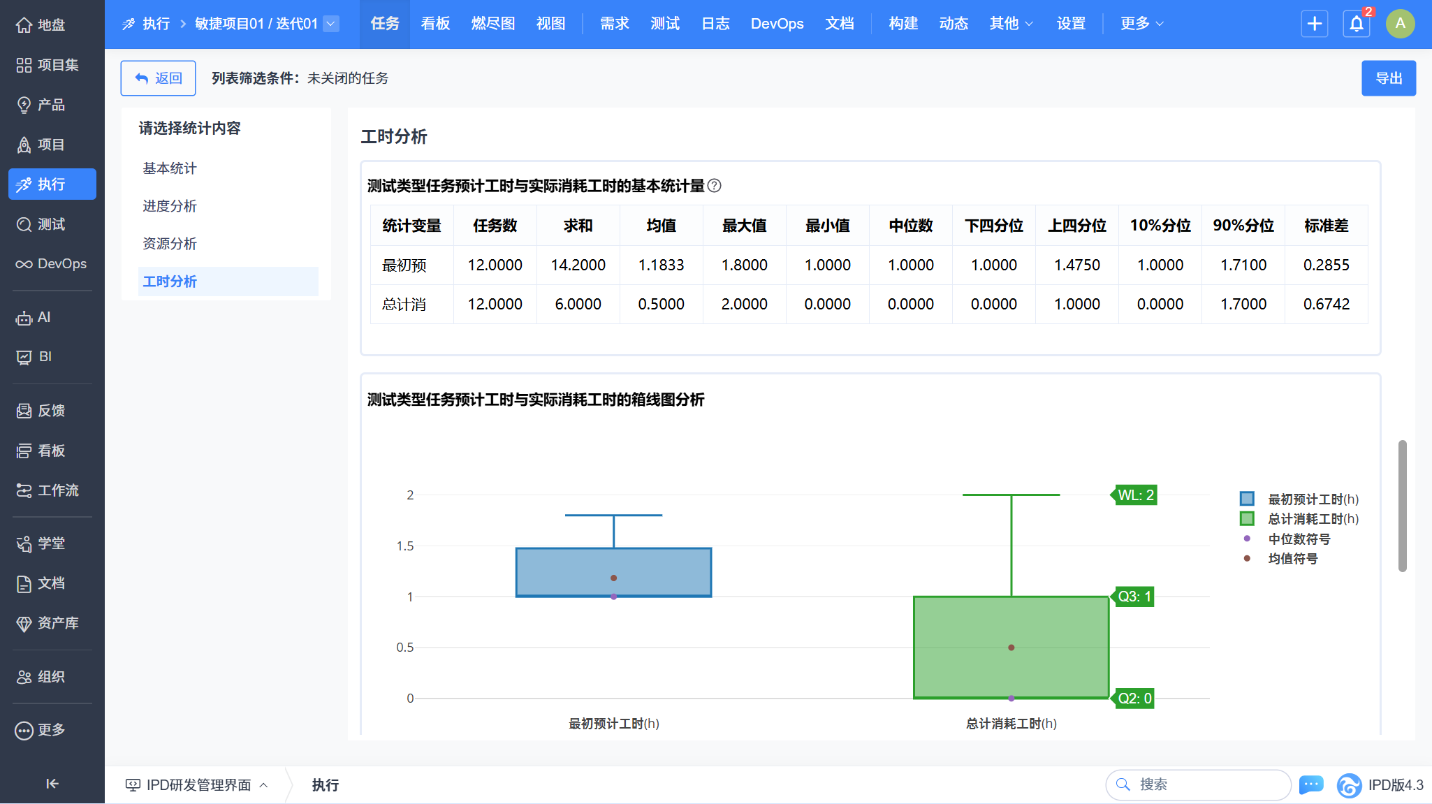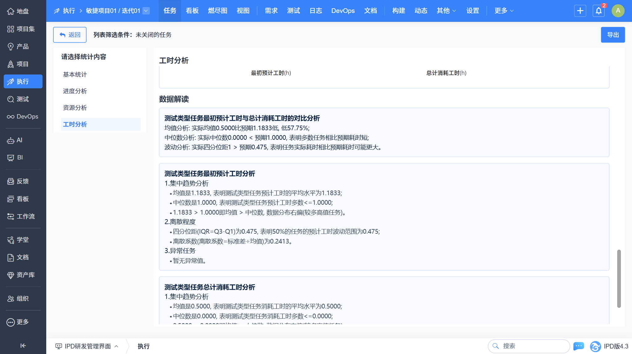 一、执行任务列表工时分析