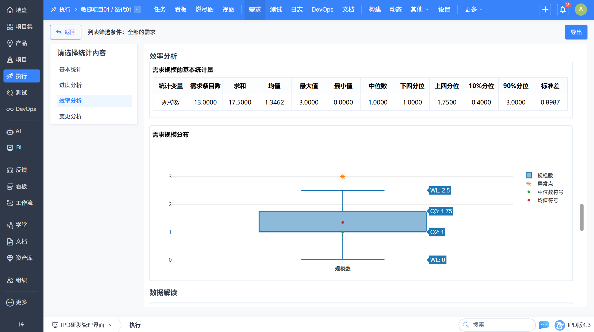 - 执行需求列表变更分析:量化需求变更率与变更频次,有效管控需求蔓延与执行风险。