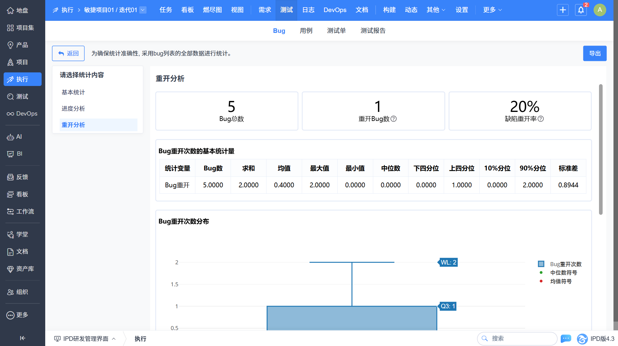 - 执行Bug列表重开分析:监控缺陷重开率与重开次数,精准定位质量问题推动解决闭环。