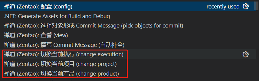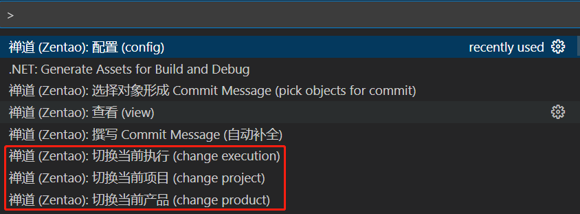 ▼安装完成后在命令面板进行插件配置,输入禅道站点地址以及用户名和密码后,选择对应产品、项目或执行。