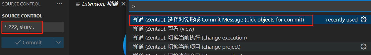 ▼通过选择禅道对象生成提交注释。