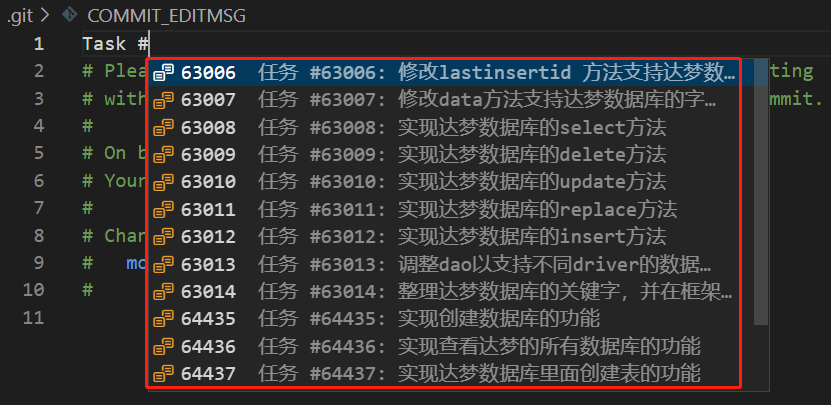 ▼填写提交注释时选择禅道对象可自动补全注释。