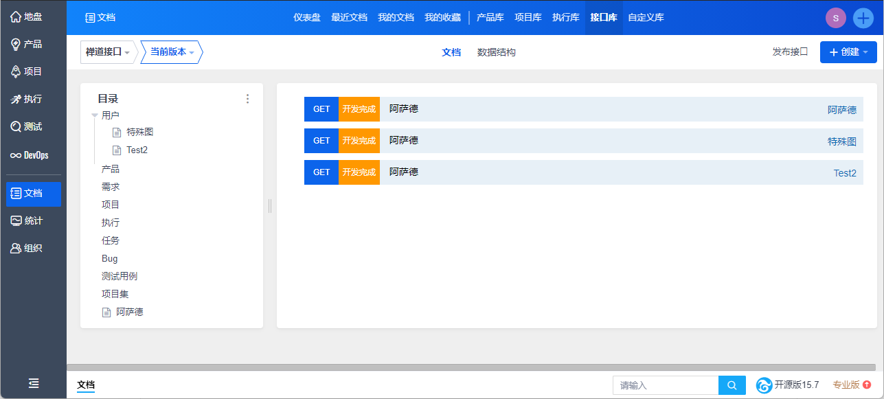 大家好,禅道15.7版本发布了!本次发布主要在文档库模块新增接口库,用户可创建接口、查看接口详情、编辑接口信息、在线维护系统接口文档。同时还修复了多个Bug、完善若干细节。欢迎大家下载升级。