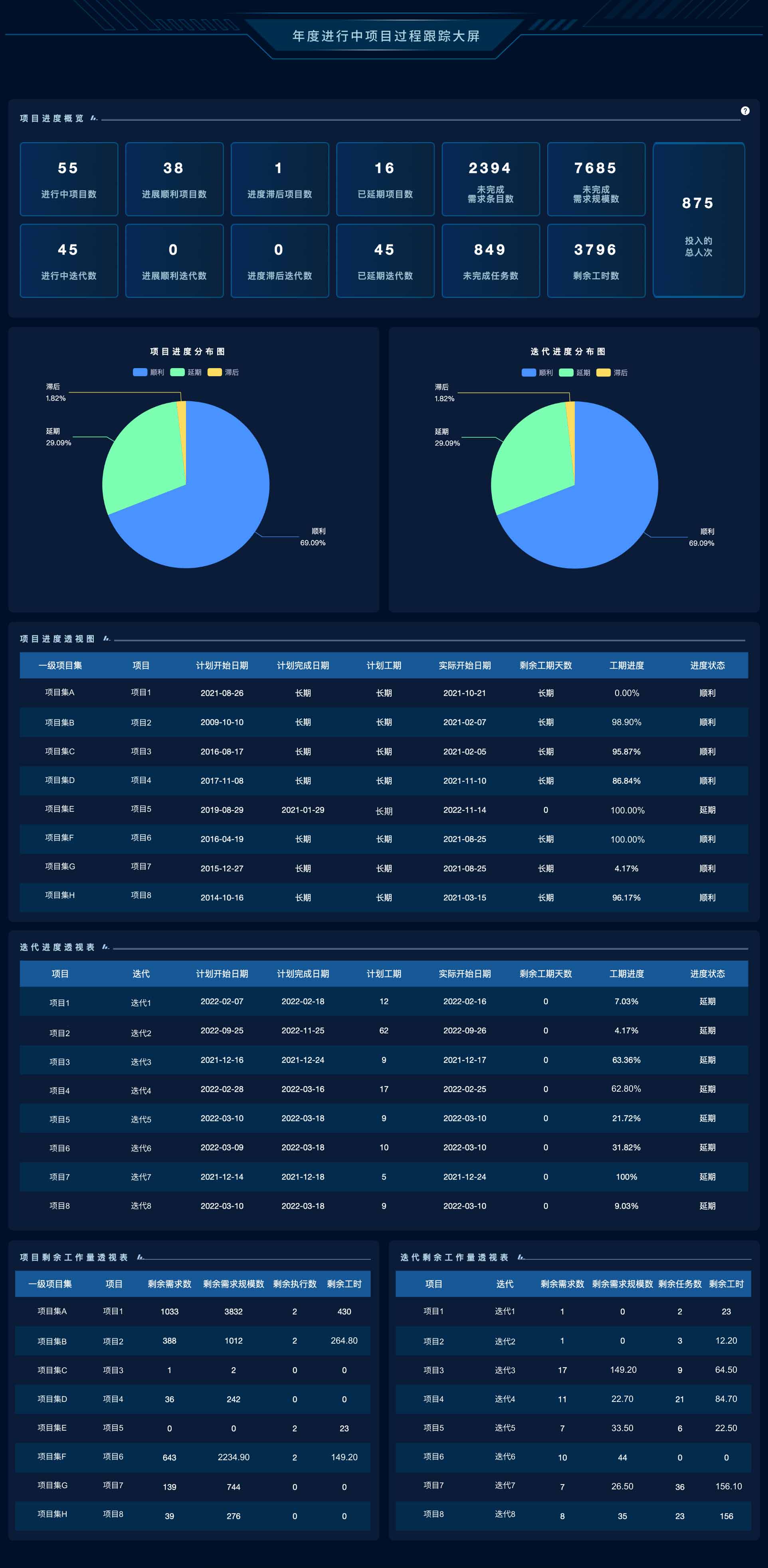 - 内置年度进行中项目过程数据大屏。