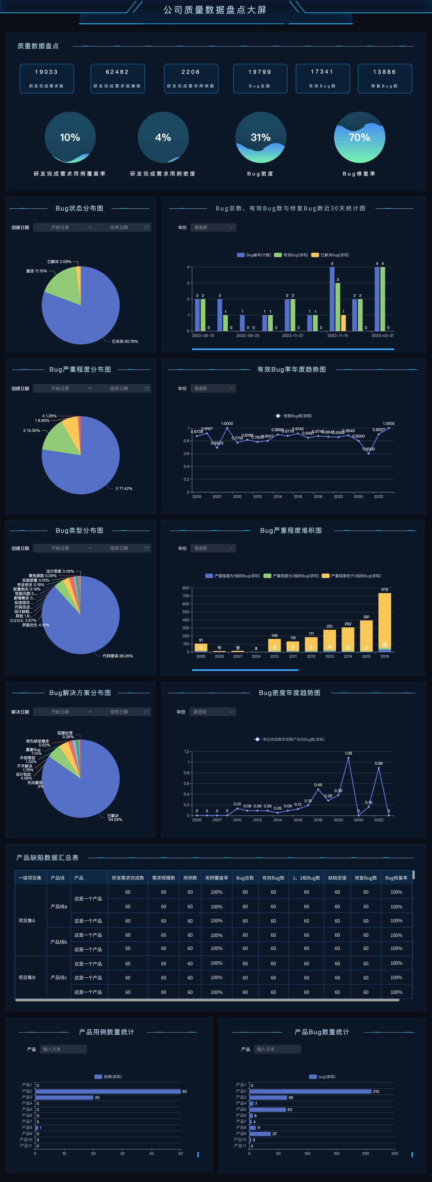 - 内置公司质量数据盘点大屏。