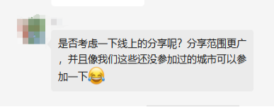 每个城市,我们都会遇见不同的故事,但这些小故事都温暖了我们。还有一些小伙伴尝试将禅道·中国行的趣味沙龙落地到自己团队中,这也赋予了禅道·中国行系列活动更多意义。除此之外,大家对禅道·中国行的呼声也十分高涨: