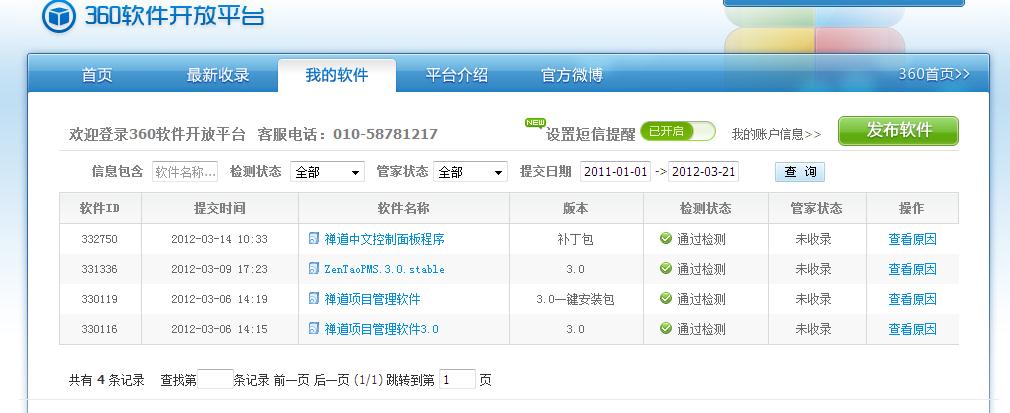 禅道项目管理软件3.0正式版上线以后,部分用户反映在下载使用禅道项目管理软件3.0正式版一键安装包时360杀毒误报病毒,针对这一情况,禅道迅速和360软件平台取得联系,并已将禅道项目管理软件通过360软件平台认证,广大用户可放心使用!