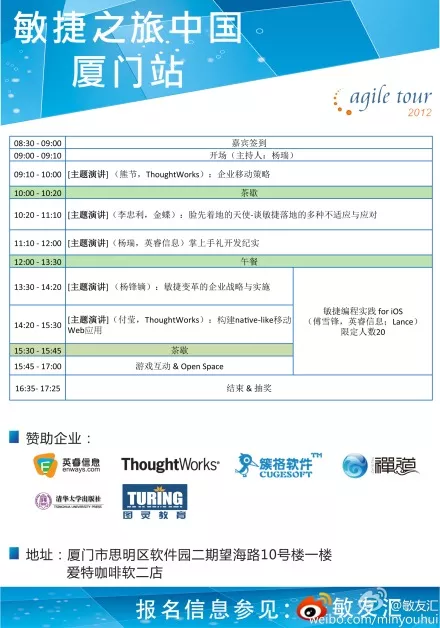 敏捷之旅2012年度福州、厦门双重来袭!
