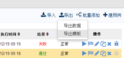 2、测试->用例->导出->导出数据,导出已有数据的csv文件。在此文件进行修改或新增数据,保存。