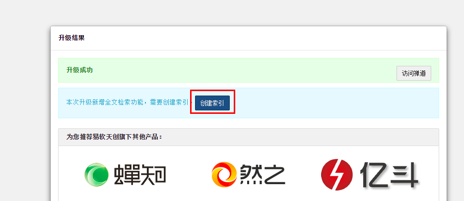 2、如果升级没有创建索引也没关系,可以使用后台->重建索引功能来创建索引