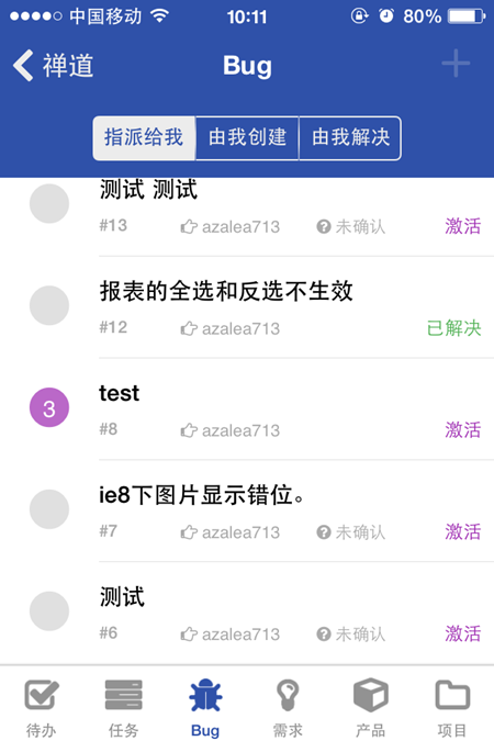 * Bug支持的操作:确认、指派、解决和关闭;