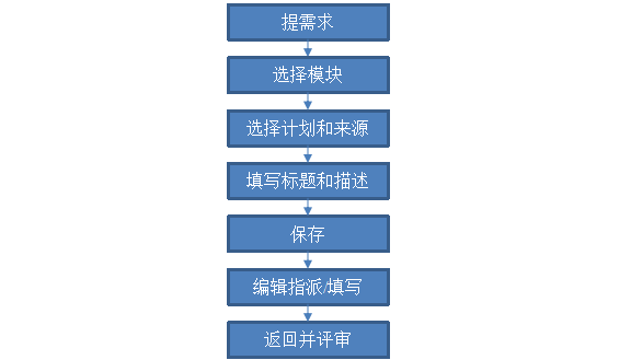 需求基于产品的设计和版本计划,所以在创建需求的时候不需要考虑具体实现细节,所有的需求在根据计划和版本录入完毕后,再进入需求的设计和指派。需求的创建具体流程如下。