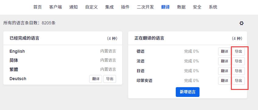 4164 实现新语言的添加功能