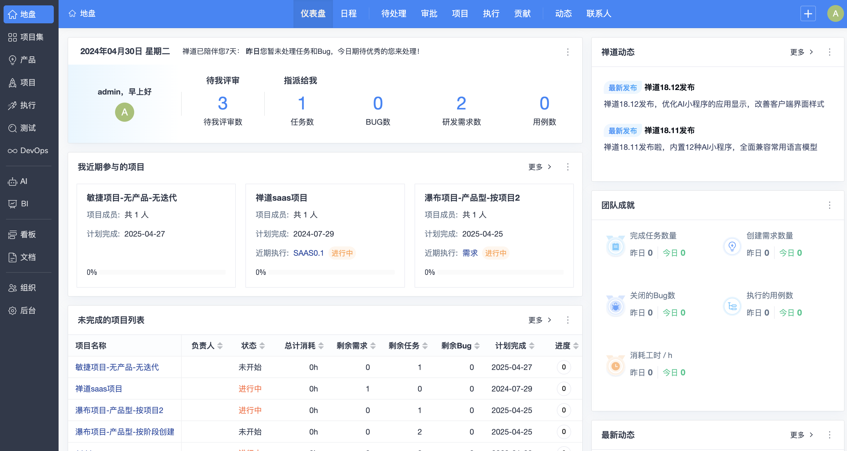 2024 年,禅道项目管理软件开源版、企业版、旗舰版、IPD版本也经历了多次重要的功能更新,通过不断的迭代优化,禅道软件变得更完善、更稳定、更易用!2024年禅道项目管理软件重点更新功能有: