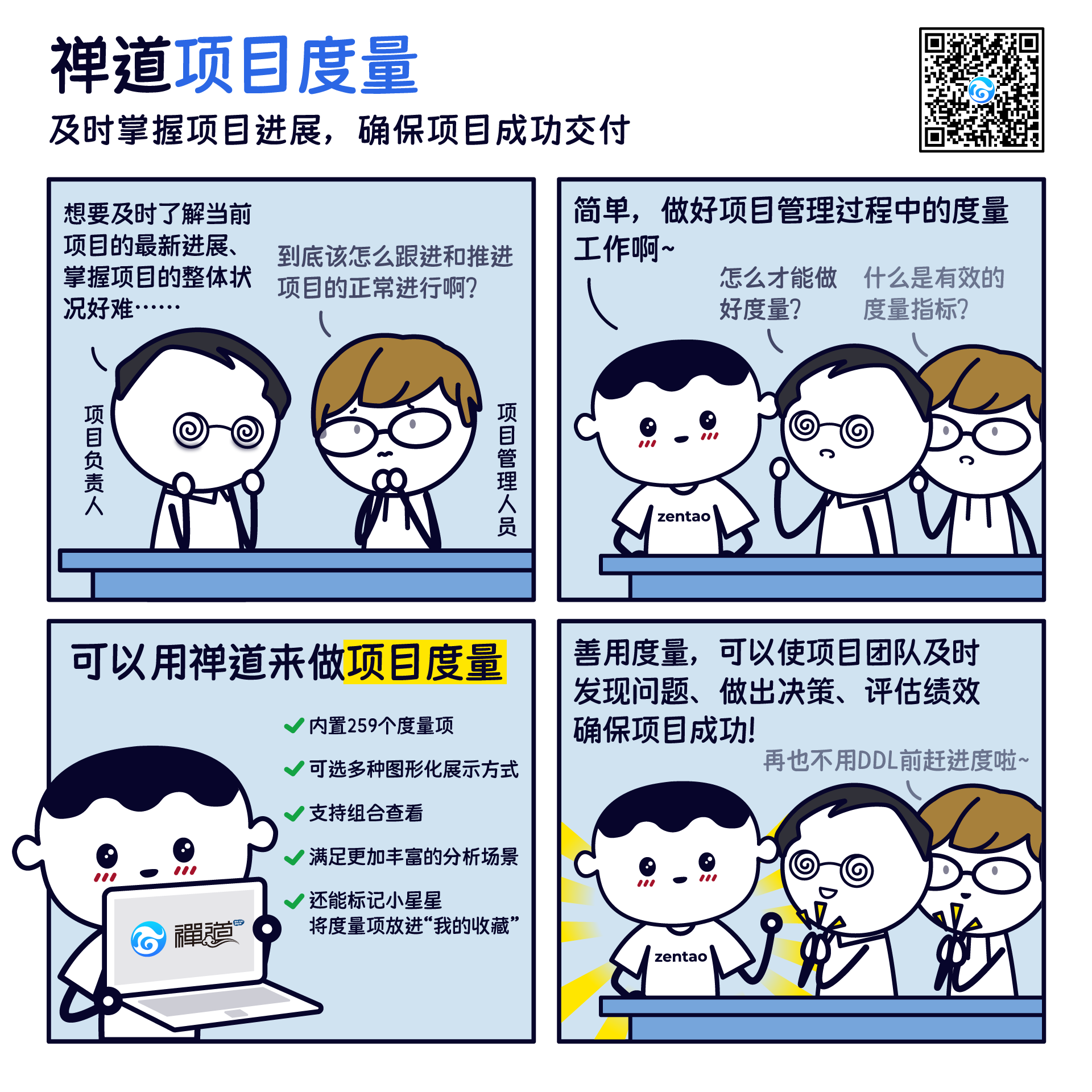 禅道团队是一群对项目管理富有热情及想象力的创意玩家,致力于为客户提供专业的项目管理服务,并专注于协助企业实现国产化替代和数字化转型。
