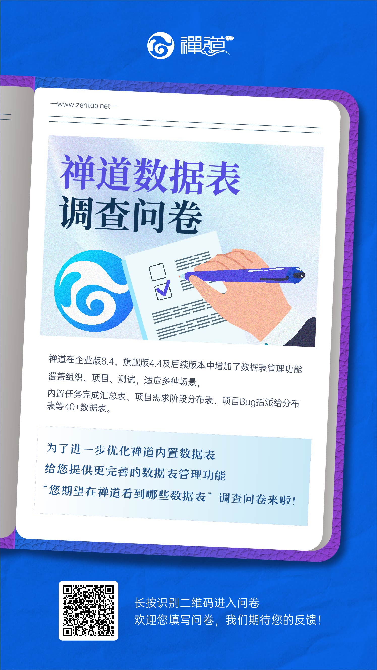 点击填写问卷:禅道数据表调查问卷