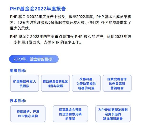 而PHP基金会也发布报告,表示计划2023年进一步扩展开发团队,支撑PHP社区的更多工作。