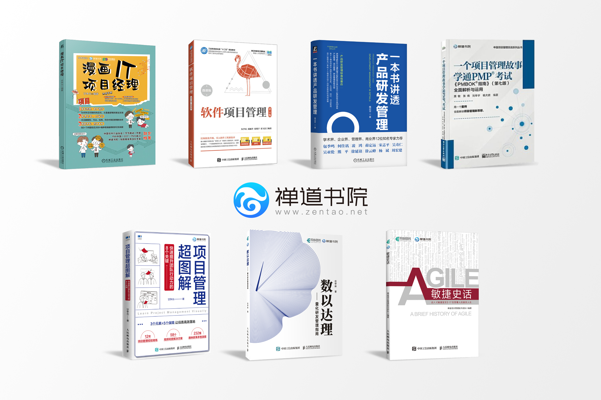 针对这一问题,禅道团队在2022年推出了“禅道书院”书籍品牌,目前已出版《一本书讲透产品研发管理》《软件项目管理 第三版》《数以达理》《项目管理超图解》《一个项目管理故事学通PMP®考试》《敏捷史话》《漫画IT项目经理》等书籍,涵盖度量、管理实践、PMP理论、人才成长等多个维度。