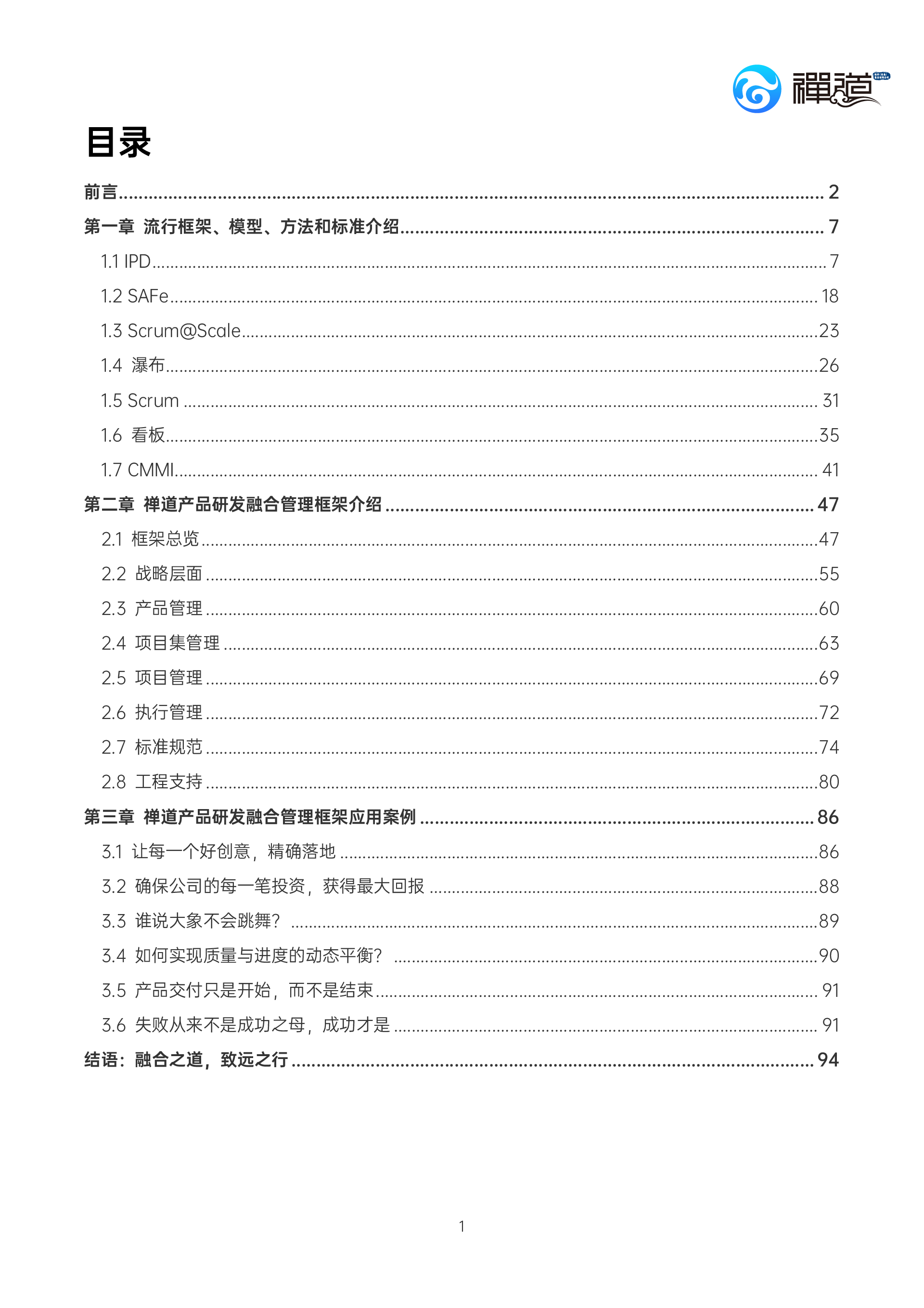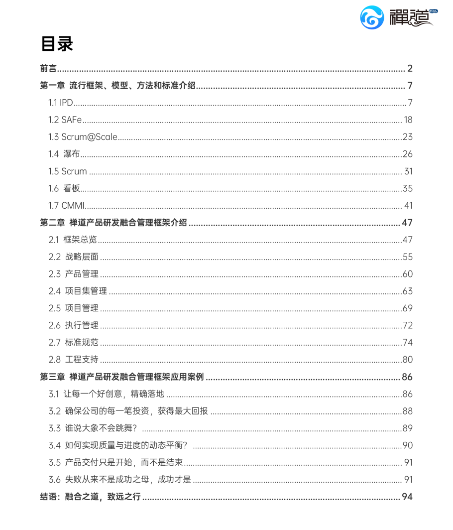 该白皮书凝聚了禅道创始人王春生和禅道团队十六年服务国内企业的实践经验,深入剖析了成长型企业在产品研发管理中面临的典型挑战,深度整合IPD、SAFe、Scrum、CMMI等全球主流的优秀管理框架,提出了一套系统性、可落地的融合管理框架——禅道产品研发融合管理框架。