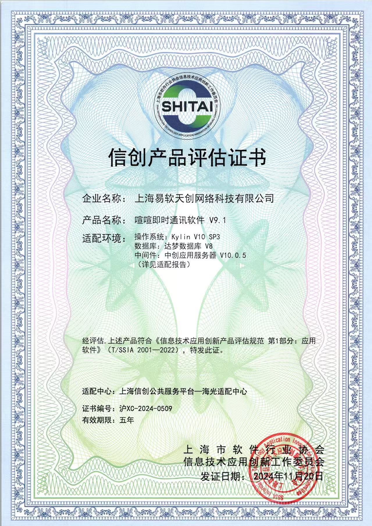 加速国产化替代,禅道旗下产品喧喧即时通讯软件荣获信创产品评估证书