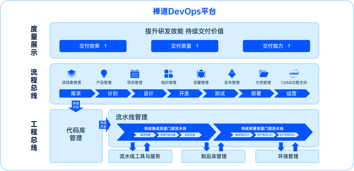 禅道于2023年9月发布了一款全新打造的平台级产品禅道DevOps平台解决方案。禅道DevOps平台版打通了从产品、需求、项目到开发、测试、运维环节,贯穿了整个软件交付生命周期,具有加快交付速度、提高交付质量、减少团队摩擦、实现快速反馈等优势。