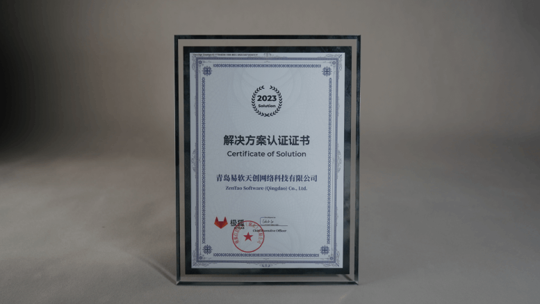 除此之外,2023年禅道还收到了,极狐信息技术(湖北)有限公司颁发的「2023解决方案认证证书」。