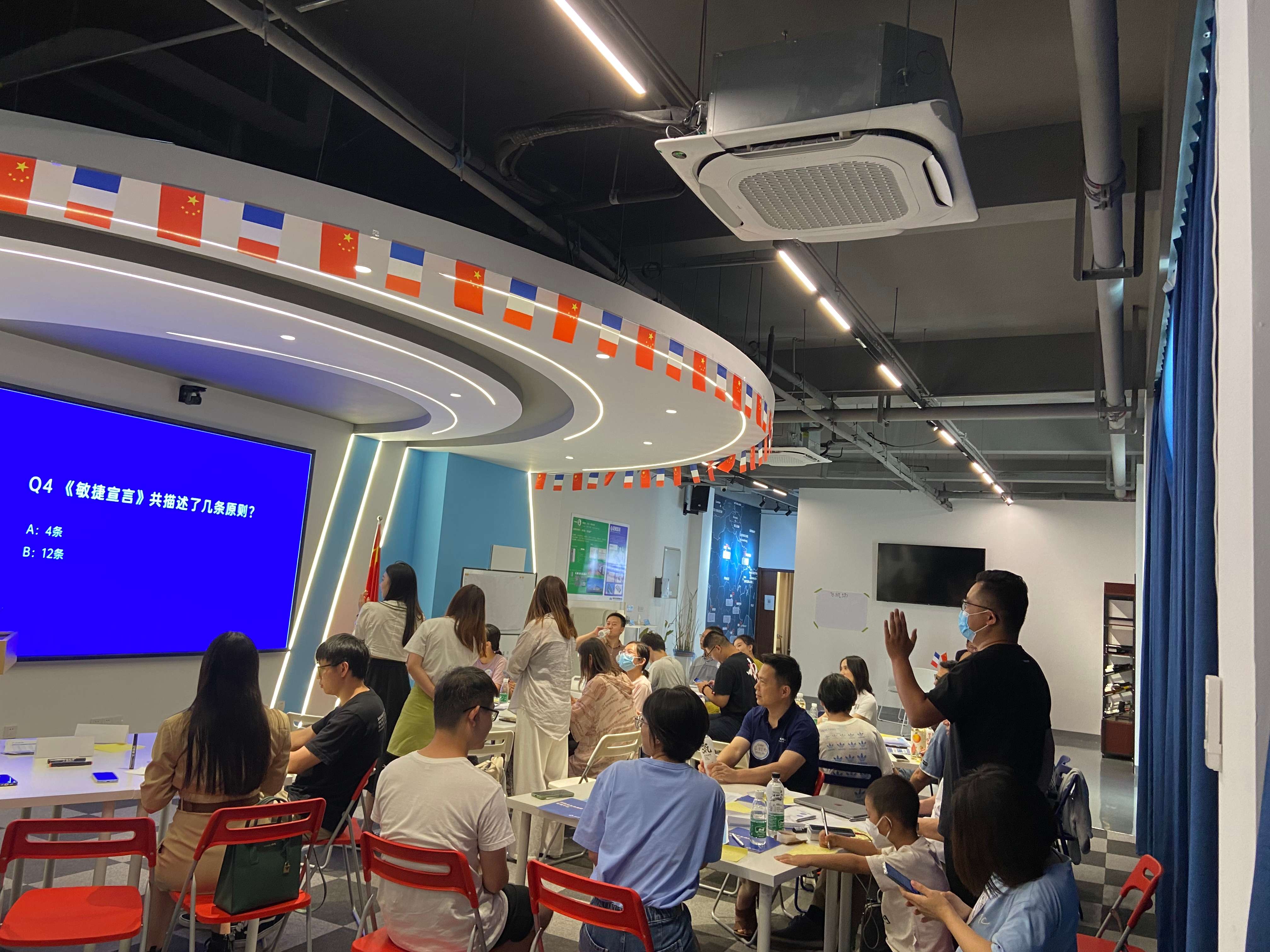 接着就是我们的工作坊上场了。 在本场工作坊中,李晓琳和郑乔尹两位老师以游戏的方式讲解专业的敏捷知识,带领参会者体验了敏捷的计划、迭代、验收、回顾,帮助了解团队是如何在短周期内交付产品,从而实现快速反馈、持续改进和快速适应变化,最终因地制宜设计出适宜自己的自组织团队,帮助团队打造高效敏捷文化!