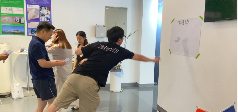 团队任务的成果检验:纸飞机试飞。