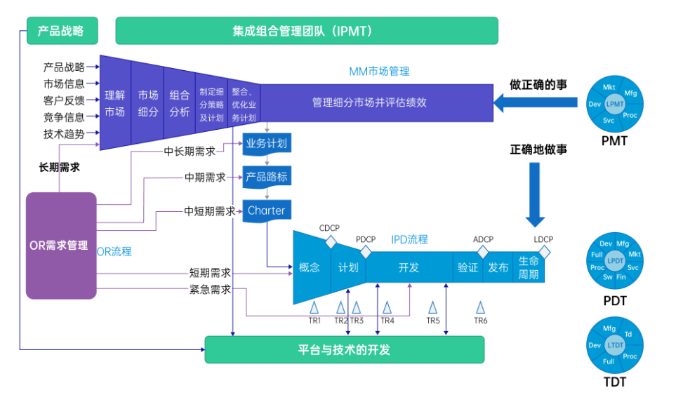 在华为 IPD 市场管理流程中,“产品线规划” 是一个至关重要的模块。它涵盖了产品线业务计划、产品策略分析、识别潜在项目、PDC 组合分析、输出项目清单以及制定产品路标规划等多个方面。产品线业务计划明确产品的市场定位、市场策略、开发计划、生产制造策略和财务分析,为产品线发展提供蓝图。产品策略分析通过市场调研、竞争分析和客户需求分析,确定产品在市场中的竞争优势和发展方向。识别潜在项目从需求、技术趋势和市场趋势出发,挖掘具有商业价值的产品机会。PDC 组合分析综合评估产品、市场和竞争,衡量项目商业价值和风险。输出项目清单经过筛选和评估,确定具有可行性和商业价值的项目。制定产品路标规划为产品发展明确方向、时间节点和关键特性,提供研发和市场推广的路线图。整体而言,产品线规划在华为 IPD 市场管理流程中起着关键的指导作用,确保产品开发满足市场需求,提高企业竞争力,实现可持续发展。
