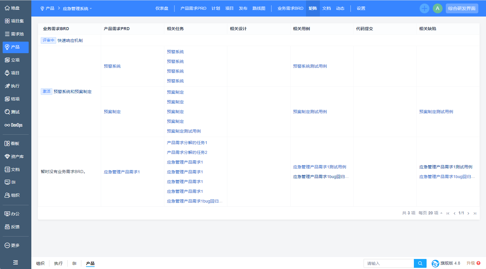 隼眼科技作为车载毫米波雷达的主要供应商之一,需要满足ASPICE(“Automotive Software Process Improvement and Capacity Determination”,汽车软件过程改进及能力评定)中V模型对于需求的追溯要求。在过往需求管理、任务管理、测试独立管理的情况下,无法得到很好地支撑。解决方案