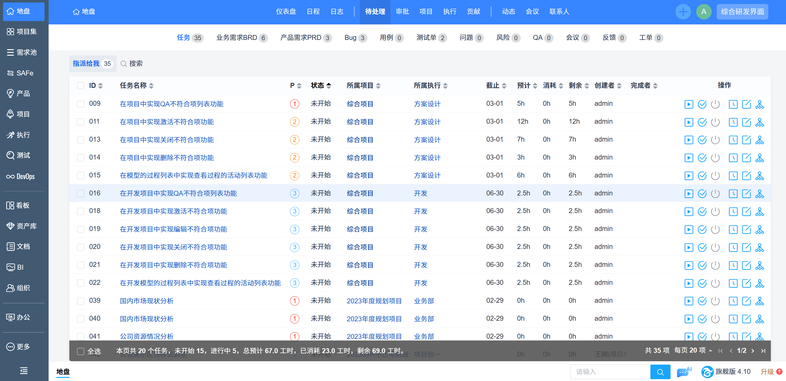 演示系统-待处理任务界面