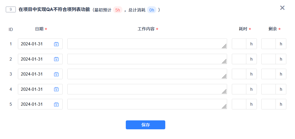 演示系统-工时记录界面