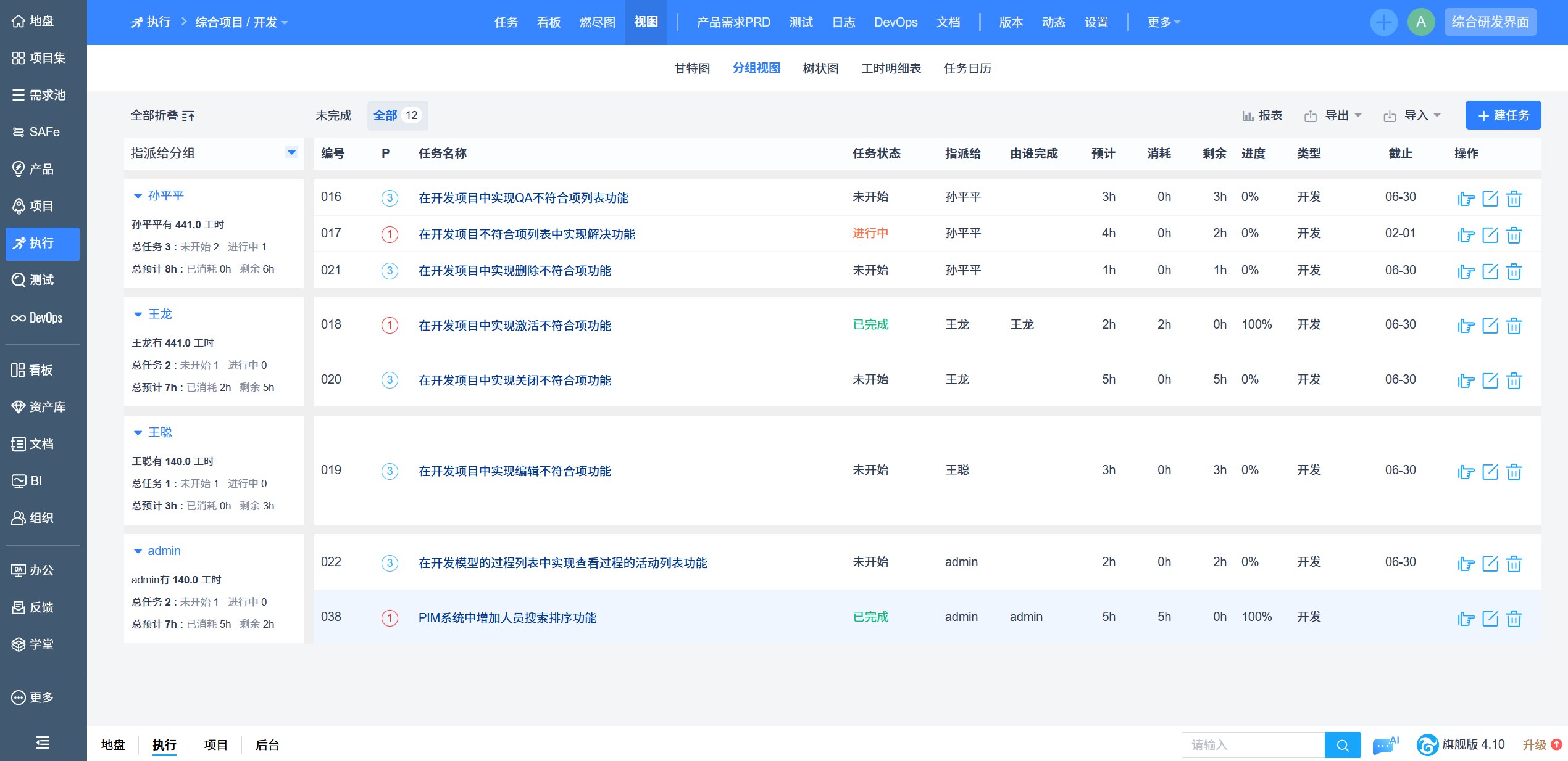 演示系统-指派人分组视图