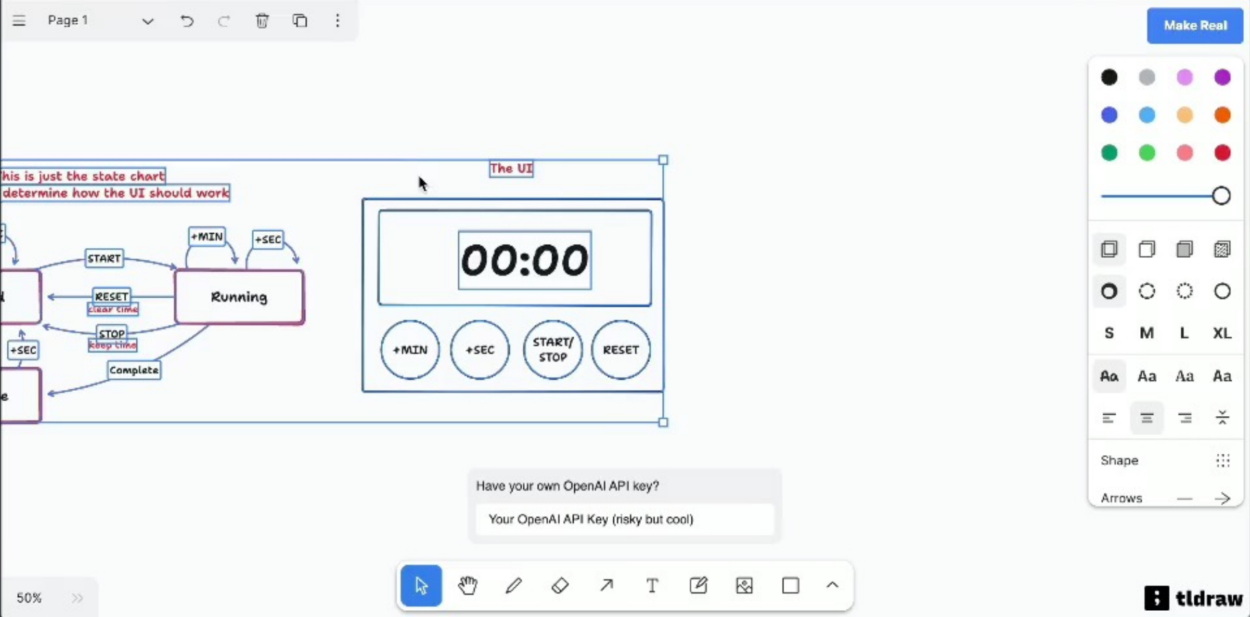 在实际的软件项目开发过程中,项目经理需要与客户进行沟通。在这个过程中,项目经理或者产品设计师要设计草图,描述该项目的外观、功能和按钮作用等,如按钮能够执行什么。通过这样的草图,借助于 GPT4-v等具备图像识别能力的大模型可以直接生成相应的代码。然后,可以在草图上再加一点提示词,说明需要进行修正的部分,再生成一个全新的版本。在实际工程中,包括登陆页面、落地页等在内的实现都可以较好地完成,小程序同样可以尝试这种模式。传统意义上说,使用大模型如ChatGPT时,需要通过文字来与模型进行交互。然而,在刚才提到的计时器应用开发场景下,通过语言来清楚完整地描述它的功能需求和设计是相当困难的。
