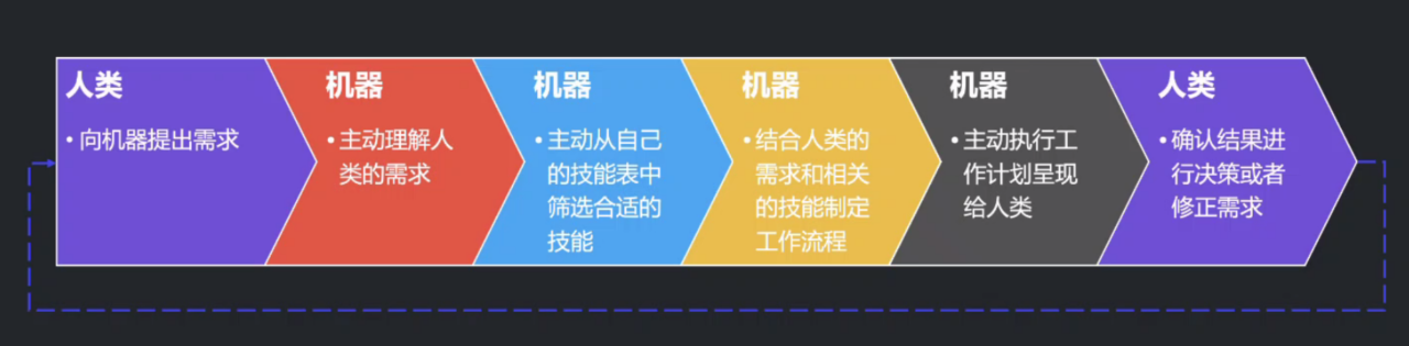 也就是说告诉计算机我们的需求是什么,AI来理解需求、生成自己的执行步骤并自动执行,最终将结果反馈给用户即可。