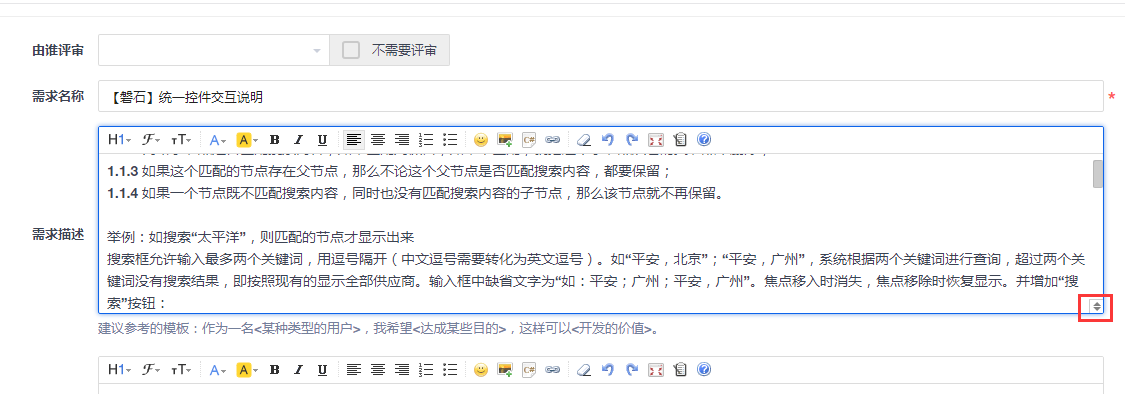 新的禅道需求详情页面需求描述的录入框需要把光标放在底部右下角才会出现下拉的图标,才能进行上下伸缩的拖拽,很不方便,希望尽快改进,像之前一样能把光标放在底部的线就可以进行拖拽。