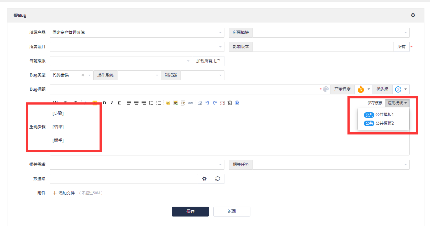 bug重现步骤能设置自定义模板为默认模板吗?每次都要选比较麻烦