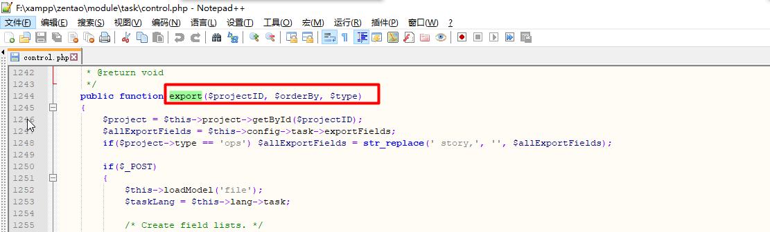 可以看下xampp\zentao\module\task\control.php 中export 方法