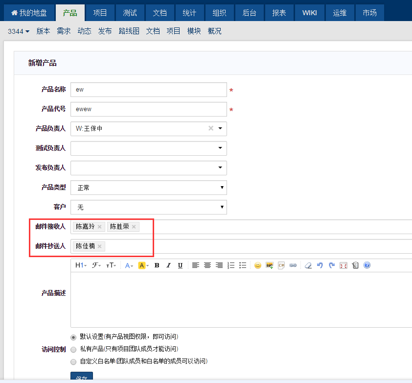 新增产品界面,新加2个人员多选项,报错:长度应当小于255