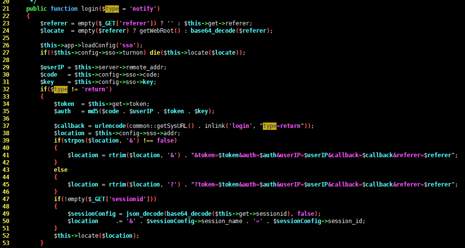 可以参考下代码:zentaopms/module/sso/control.php login 方法;可能是notify、return或者其他。