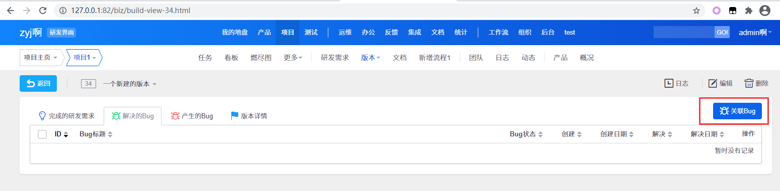 2. 在测试中提Bug,到解决并关联解决版本为1.1